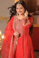 Red & gold-toned embroidered Kurta with Trousers & dupatta