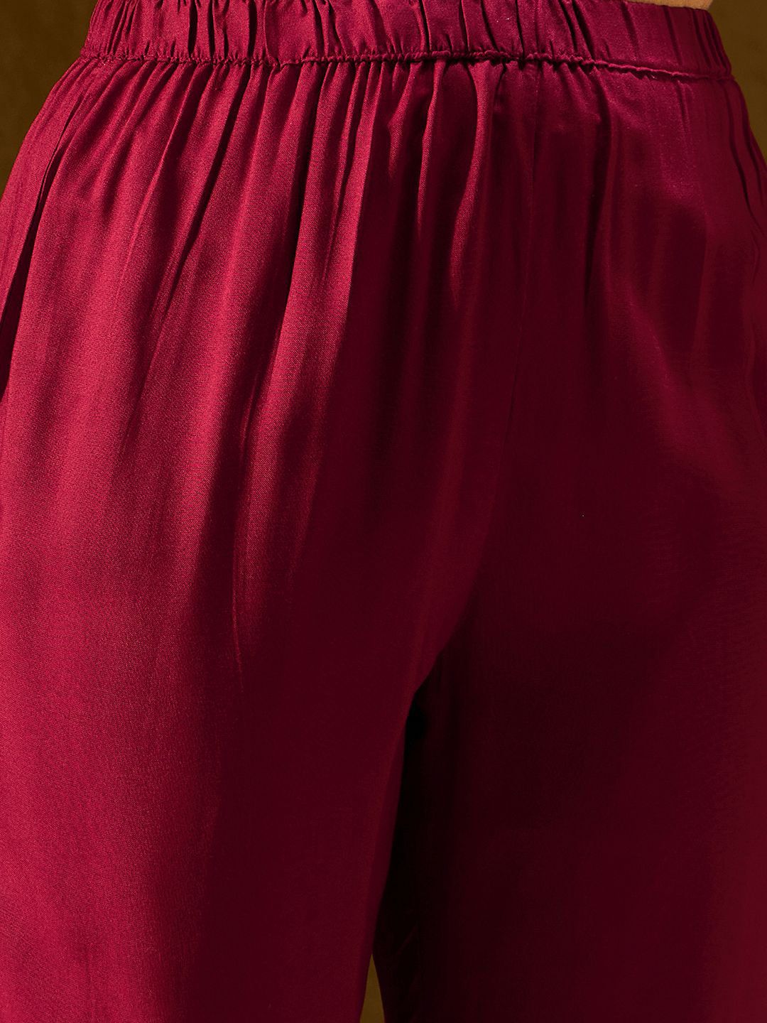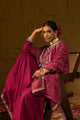 Maroon & gold-toned embroidered Kurta with Trousers & dupatta