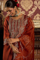 Rust ethnic motifs embroidered zari staright kurta with trousers & dupatta