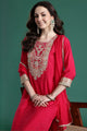 Red, magenta and burgundy embroidered kurta with trousers and dupatta