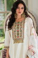 Off white, gold & pink embroidered kurta with trousers & dupatta