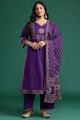 Purple printed Kurta with Palazzos and dupatta