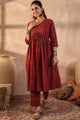 Dhiyona IE Ethnic Motifs Printed A-Line Pure Cotton Kurta With Trousers