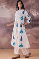 Dhiyona IE Ethnic Motifs Printed Band Collar Thread Work Pure Cotton Kurta With Trousers