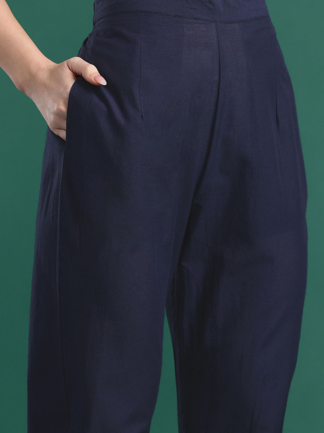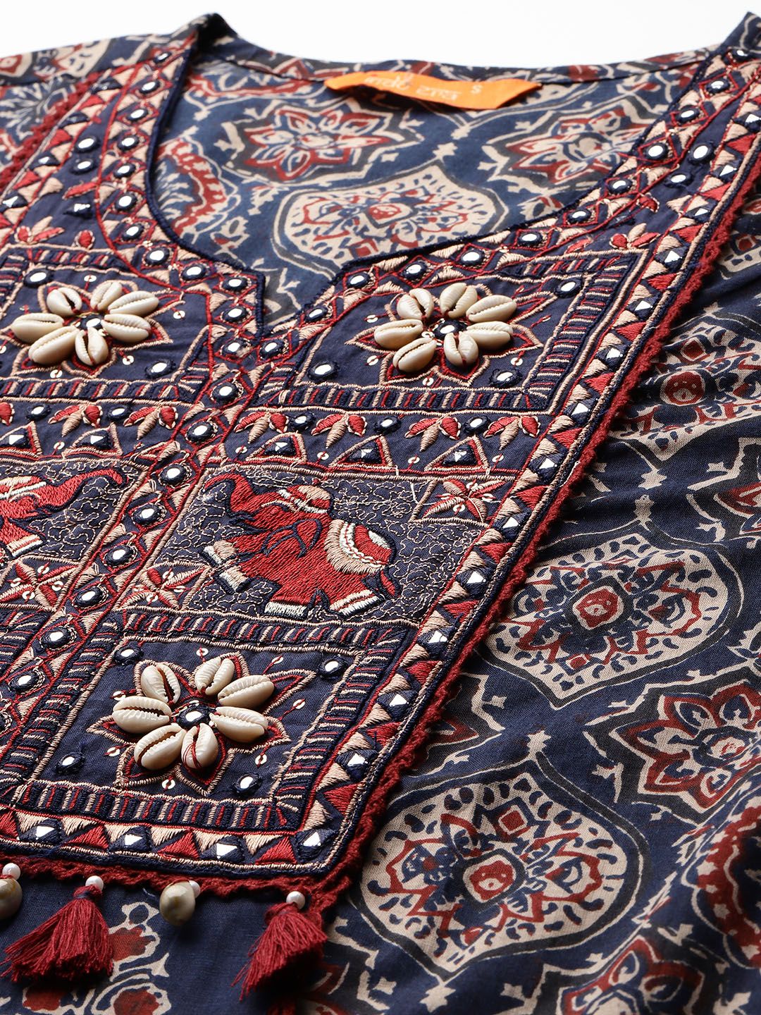 Dhiyona IE Ethnic Motifs Printed Panelled Mirror Work Pure Cotton Kurta Set