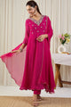 Fuchsia and white printed Kurta with Trousers and dupatta