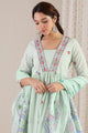 Green, pink and blue printed kurta with trouser and dupatta
