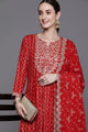 Red printed Kurta with Trousers with dupatta