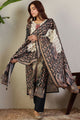Black, pink and beige printed Kurta with Trousers with dupatta