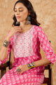 Pink & white printed Kurta with Trousers