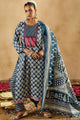 Blue, white & red printed Kurta with Trousers & dupatta
