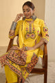 Yellow, red and black printed Kurta with Trousers with dupatta