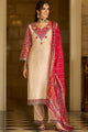 Beige, pink and blue printed Kurta with Trousers with dupatta