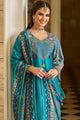 Teal, pink and gold-toned printed Kurta with Trousers with dupatta