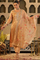 Peach-coloured woven design Kurta with Trousers with dupatta
