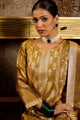 Mustard yellow & gold-toned ethnic motifs woven design zari kurta with trousers & dupatta