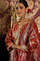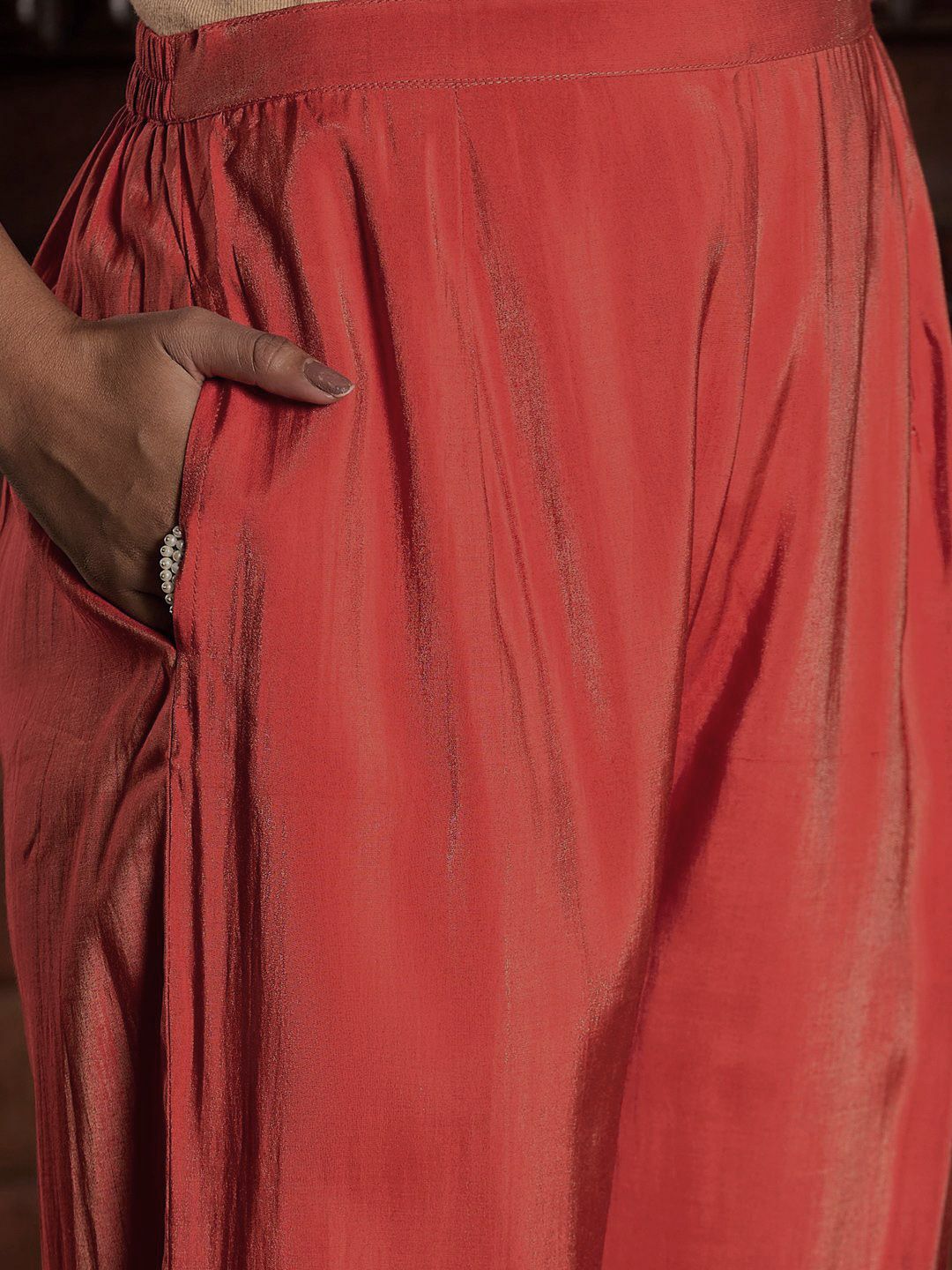 Red & gold-toned ethnic motifs woven design zari straight kurta with trousers & dupatta