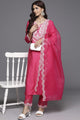 Dhiyona IE Ethnic Motifs Yoke Design Straight Thread Work Liva Kurta with Trousers & Dupatta