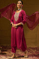 Maroon & gold-toned yoke design Kurta with Trousers & dupatta
