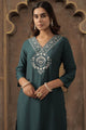 Dhiyona IE Ethnic Motifs Yoke Design V-Neck Thread Work Straight Kurta With Trousers