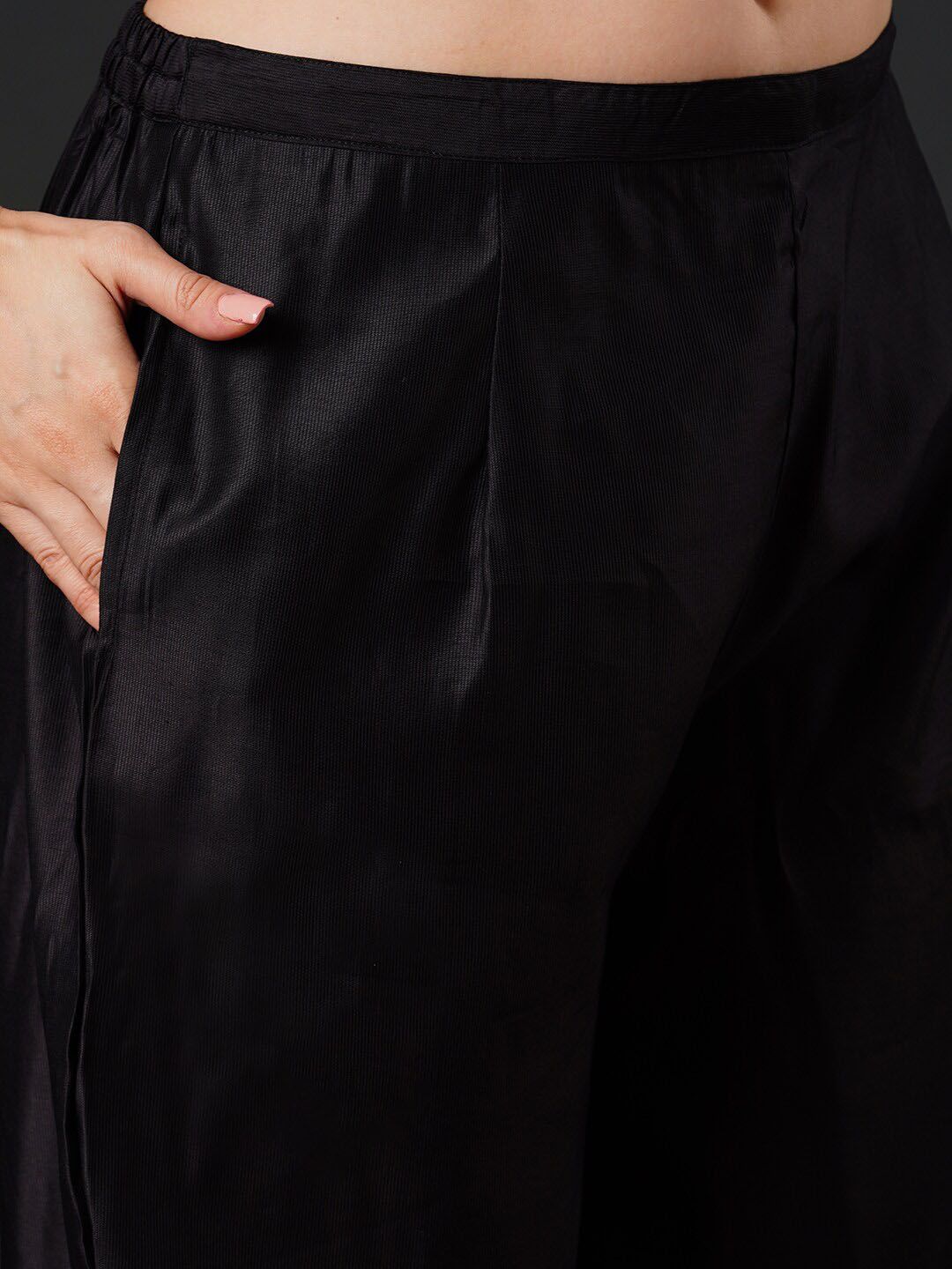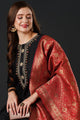 Black, red, gold toned yoke design kurta with trousers with dupatta