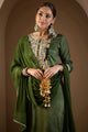 Green and gold embroidered Kurta with Trouser & dupatta