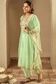 Green & gold-toned embroidered Kurta with Trousers & dupatta
