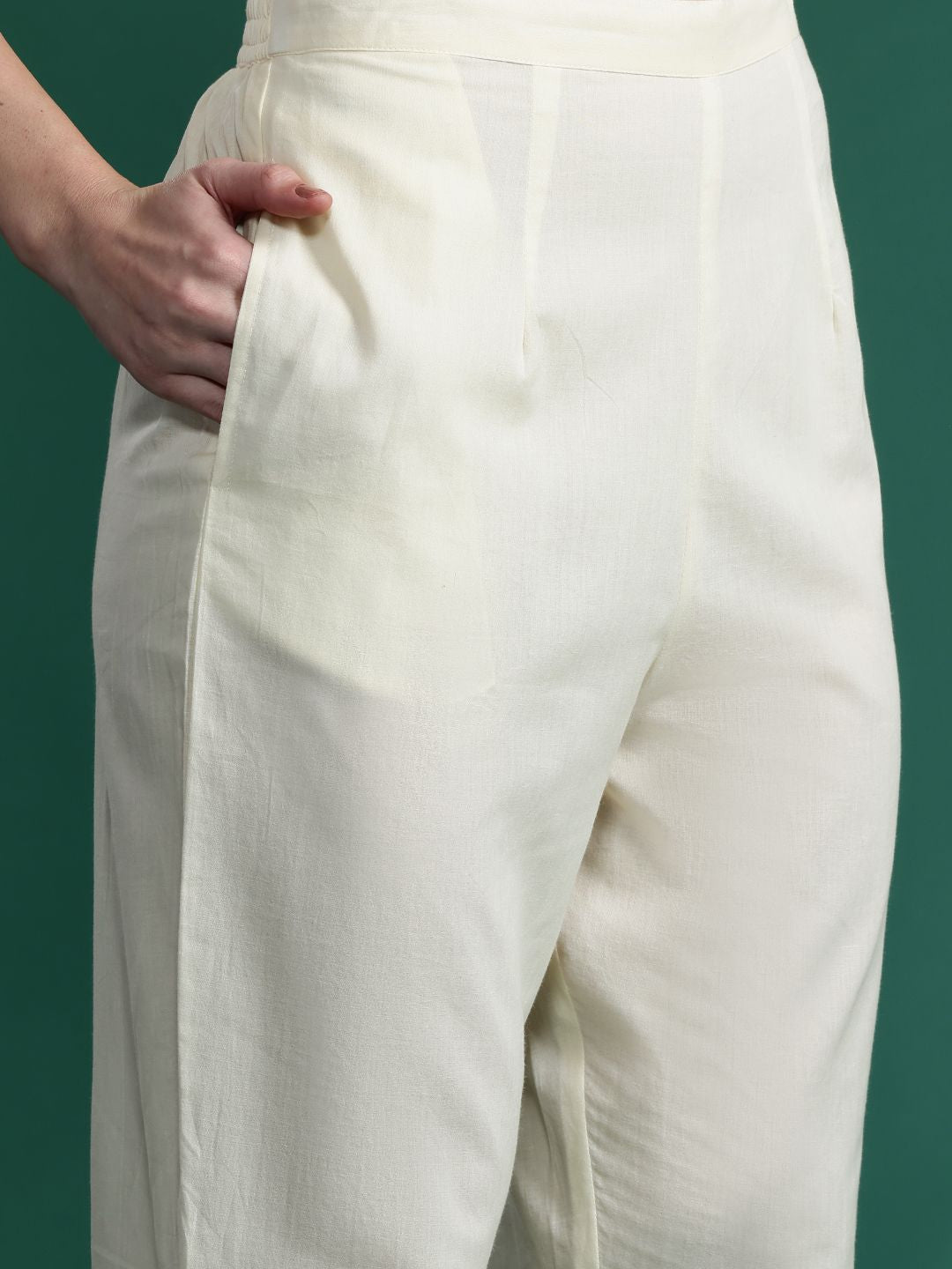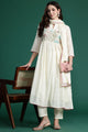 Dhiyona IE Floral Embroidered Empire Thread Work Pure Cotton Kurta with Trousers & Dupatta