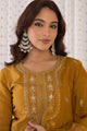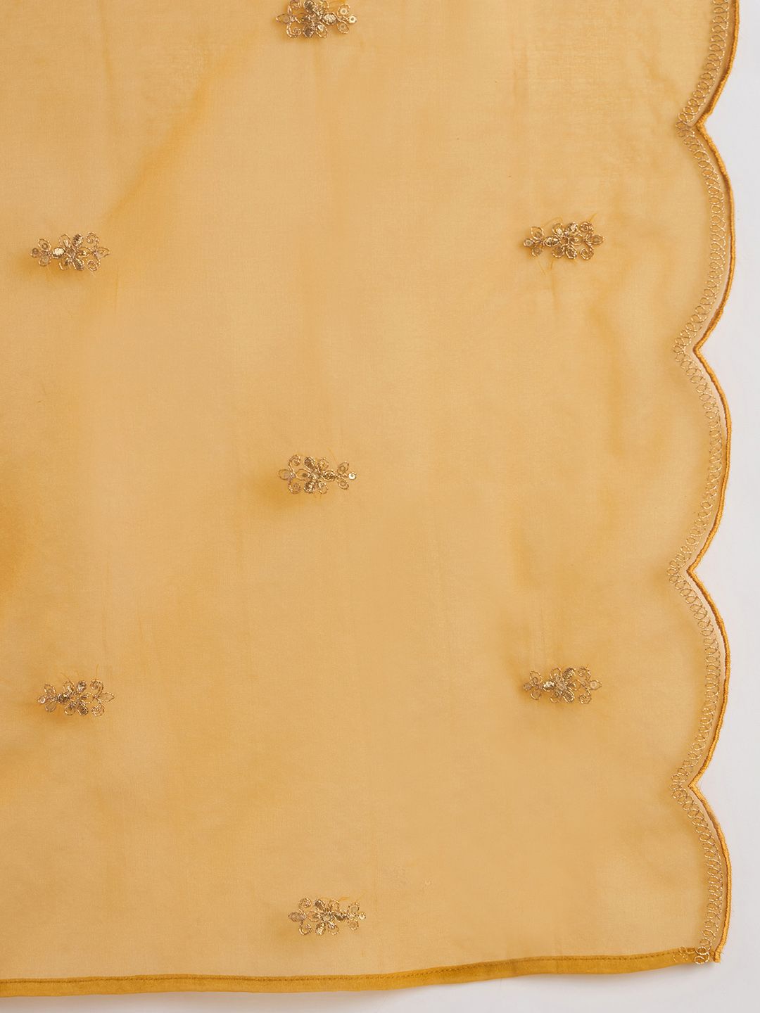 Mustard yellow and gold-toned embroidered kurta with trousers and dupatta
