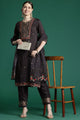 Charcoal embroidered Kurta with Trousers with dupatta