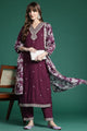 Burgundy embroidered Kurta with Trousers with dupatta
