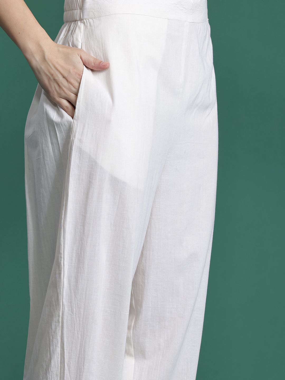 Dhiyona IE Floral Embroidered Linen Kurta with Trousers & Dupatta