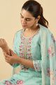 Dhiyona IE Floral Embroidered Linen Thread Work Straight Kurta & Trousers & Dupatta