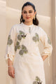 Dhiyona IE Floral Embroidered Mandarin Collar Pure Cotton A Line Kurta With Trousers