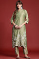 Dhiyona IE Floral Embroidered Mandarin Collar Straight Tunic And Trousers