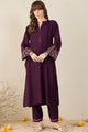 Dhiyona IE Floral Embroidered Mandarin Collar Thread Work Straight Kurta & Trousers