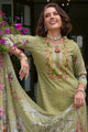 Green , pink and yellow embroidered kurta with trousers and dupatta