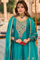 Sea green, green and gold-toned embroidered kurta with dhoti pants and dupatta
