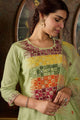 Green, yellow and orange embroidered kurta with trousers and dupatta