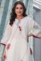 Dhiyona IE Floral Embroidered Mirror Work Tie-Up Neck Pure Cotton A-Line Kurta With Trousers