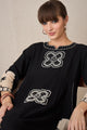 Dhiyona IE Floral Embroidered Notch Neck Empire Thread Work A-Line Kurta With Palazzo