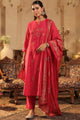 Pink , orange and beige embroidered kurta with trousers & dupatta