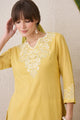 Dhiyona IE Floral Embroidered Notch Neck Pure Cotton Straight Kurta With Trousers