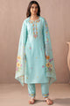 Sea green, pink and yellow embroidered kurta with trousers and dupatta