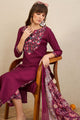 Burgundy & blue, pink embroidered Kurta with Palazzos with dupatta