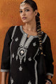 Dhiyona IE Floral Embroidered Notch Neck Thread Work Straight Kurta With Trousers