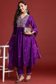 Purple embroidered Kurta with Trousers with dupatta
