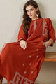 Rust & white floral embroidered top, has a mandarin collar and three-quarter sleeves