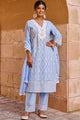 Bluea nd white embroidered Kurta with trousers and dupatta