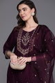 Burgundy embroidered Kurta with Trousers with dupatta